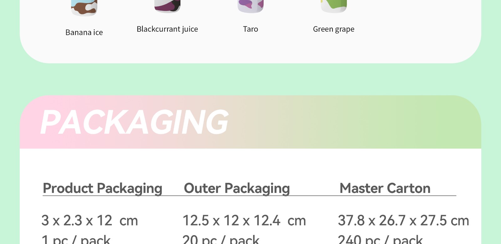 DaHongPao Tea/Rose Litchi/Passion fruit Grapefruit/Watermelon/Black Ice Mint/Jasmine Tea/Longjing Tea/Peach Blossom Tea/Sour Grape/Cola Ice/Lemon Pineapple/Coconut Ice/Guava/Green Mango/Banana Ice/Blackcurrant Juice/Taro/Green Grape