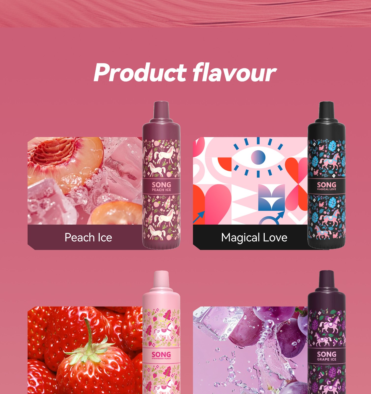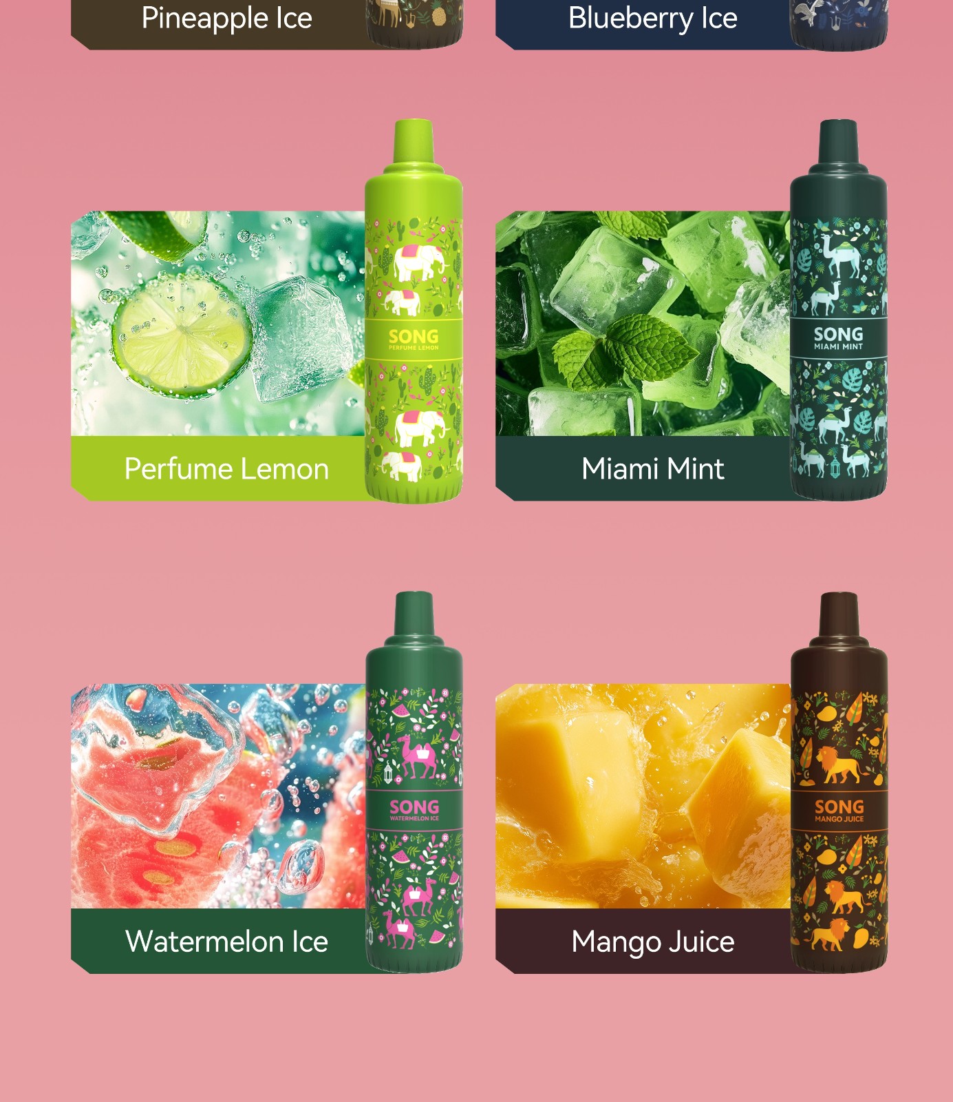 Peach Ice/Magical Love/Strawberry Punch/Grape Ice/Pineapple Ice/Blueberry Ice/Perfume Lemon/Miami Mint/Watermelon Ice/Mango Juice